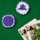 chips de póquer morado y blanco con arte de rana morada por un lado y diseño gráfico piel de serpiente morado por el otro lado.