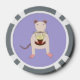 Este impresionante conjunto de fichas de póquer presenta una imagen gráfica de una adorable rata elegante siamesa con un cuerpo color crema, pies y patas rosados, orejas marrones, nariz y cola y pequeños ojos rojos. La rata dulce está sosteniendo una deliciosa tarta de cumpleaños en sus patas. La tarta es una torta de chocolate recubierta de helado amarillo pálido y llena de mermelada roja. Hay nueve velas encendidas encima del pastel.