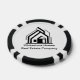 This professional realtor poker chip is custom made with your real estate company name under the modern cursive script. These trendy minimalist white and black realty business promotional items feature a house logo image that can be replaced with your own for home builder or realty agent company marketing.