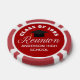 Custom class reunion party favor poker chips in red and white for a high school, college, or university. Customize with your school name and graduating class under the elegant calligraphy for great personalized alumni celebration gifts.