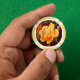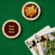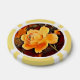 Representación estilizada de un rosa amarillo-naranja sobre un fondo rojo oscuro y naranja. Personalizar añadiendo su propio texto en el reverso.