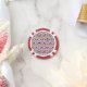 Round poker chip with a floral pattern on both sides. The design features purple and pink flowers with green leaves on a beige background, framed by red and white segments.