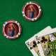 Estos chips de póquer muestran una representación radiante de Jesucristo con un halo brillante y el Sagrado Corazón — porque ¿quién no querría la intervención divina cuando es momento de aumentar las apuestas? Con Jesús en una bata de carnero y manto azul, está bendiciendo tu juego con un toque celestial. Ya sea que lo estés apostando todo o simplemente jugando por diversión, estas fichas te recordarán que no se trata solamente de ganar —se trata de mantener la fe (y tal vez un poco de suerte divina a tu lado).