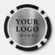 Poker chips for employees or clients to celebrate the 75th anniversary of your business. Commemorative design personalized with your company logo and the year on the front, with a faux silver metal background, a laurel branch, and stars. On the back, it has space to add a bigger logo or an image, and it can be changed to text by clicking the button to edit the design.