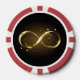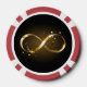 Oro, símbolo de infinito de joyas con estrellas doradas sobre fondo negro. Diseño con estrella dorada.
