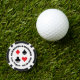 Celebra tu estilo de casino boda con estos chips de póquer personalizado negros, rojos y blancos que presentan dos áreas de texto curvo que rodean un tema clásico de Las Vegas de trajes de tarjetas rojas y negros: diamante, pala, club y corazón.
