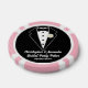 Fichas de póquer divertidas para la fiesta de la novia con un esmoquin de corbata negra en un lado y un vestido rosa en el otro. Personalice con los nombres de la novia y el novio para un juego de póquer de la fiesta de bodas. Las cartas y fichas personalizadas también hacen un regalo divertido para la fiesta de la novia.