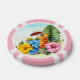 Poker chips with tropical design. Frosty cocktails, hibiscus flowers and big leaves are the design on chips with edge color options.