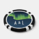 Dé a los invitados, damas de honor, padrinos, o a cualquier otra persona que asista o ayude con su boda de invierno o evento especial un tratamiento especial con temática aurora con estos chips de póquer de personalizable. Un salpicón estilizado de luces boreales inspirado en el Art Deco baila a través de un fondo azul medianoche tanto en la parte delantera como en la trasera de estos chips. Debajo de las luces, encontrarás las iniciales de muestra y una fecha que se puede personalizar con tus propios detalles o un mensaje especial de tu elección para crear una ficha única y personal para conmemorar tu gran día. Este diseño coincidirá con cualquier producto de la línea Auroras Winter Wonderland para que pueda hacer su boda de temporada o evento especial tan coordinado como desee.