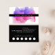 Las tarjetas de visita acuarela de moda cuentan con tu nombre o nombre de empresa en un ilustracion de tinta floreciente en brillantes y coloridos tonos rosa fucsia, magenta y violeta. Añade toda la información de contacto al dorso en blanco sobre negro crujiente. Incluye su oferta de lealtad al personalizado (que se muestra con "disfrutar de un 20% de descuento en cualquier servicio después de cinco visitas"), y seis punchouts.