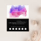 Las tarjetas de visita acuarela de moda cuentan con tu nombre o nombre de empresa en un ilustracion de tinta floreciente en brillantes y coloridos tonos rosa fucsia, magenta y violeta. Añade tu información de contacto completa a la parte posterior en blanco sobre negro. Incluye su oferta de lealtad al personalizado (que se muestra con "disfrutar de un 20% de descuento en cualquier servicio después de cinco visitas"), y seis punchouts.