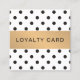 Elegante y elegante plancha de tarjeta de fidelización de personalizable con puntos negros y banda dorada FAUX. Diseño fresco y fresco, perfecto para profesionales relacionados con la belleza (peluquero, maquillador, skincare, cosmetólogo). Buenas herramientas de marketing para recompensar a sus mejores clientes.