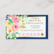 Esta es una forma bonito de tratar a sus fieles clientes con un descuento cada cierto tiempo! Esta tarjeta está diseñada para un salón de belleza, uñas, o estilismo o spa, pero todo el texto es fácilmente personalizado, así que puedes cambiarla para que se adapte a casi cualquier negocio minorista. En la parte delantera hay un hermoso ramo de rosas rosas y melocotones. Los colores son rosa, dorado pálido, agua y verde, con un toque violeta. Tu texto personalizado está en oro y verde verde azulado en el lado derecho, y colocado en un banner blanco dorado. Un borde azul marino da elegancia y estilo. La parte posterior de la tarjeta también es azul, con tres campos de texto para que usted lo personalizar. ¡Clásico! *Este diseño utiliza obras de arte de www.CreateTheCut.com.