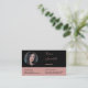 Una tarjeta de negocios rosa elegante y profesional ofrece marcadores de posición en forma de un portador de monograma redondo y nombre de empresa con símbolos de red social personalizado para conectarse. En la parte delantera hay marcadores de posición para una foto redonda personalizada con campos de texto personalizado que incluyen nombre, detalles de contacto y dirección. Es posible personalizar aún más el tipo de letra, el tamaño del tipo de letra, el color del tipo de letra y el color del fondo y de las formas. Si necesita ayuda o desea discutir un diseño personalizado, póngase en contacto con https://t.me/KBMD3signs_chat.