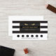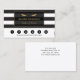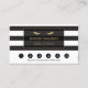 Coordina con las pestañas doradas con la plantilla de la tarjeta de presentación de franjas blancas y negras antes de las 12.01 horas. Un fondo gráfico de rayas blancas y negras crea interés visual en esta plantilla moderna de tarjetas de fidelización de clientes. Este diseño presenta pestañas en oro falso - marca perfecta para extensiones de pestañas, maquilladores, empresas cosméticas, barras de pestañas y más. Actualice el texto de promoción de su propia oferta. Diseño © 1201AM CREATIVE
