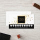 Una divertida pizca de falsos puntos metálicos de oro adornan este moderno y elegante diseño de tarjetas de fidelización blanca. El nombre o el nombre de su negocio están minimalmente diseñados en una falsa caja negra con marcos dorados en el centro. Actualice el descuento para su propia oferta única. Diseño © 1201AM Design Studio