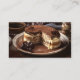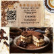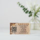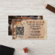 Tarjeta de visita de fidelidad para los propietarios de cafeterías, que incluye tu código QR (gratis WiFi o promociones especiales) y granos de café en una mesa de madera. En la parte posterior hay una imagen de un pastel, que puede reemplazar con la foto de su personalizado o más texto si lo desea (opcional).