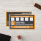 Tarjeta de clase Fitness Class Business Card 5 con un esquema de color gris oscuro y naranja, un esquema de diseño moderno y elementos tipográficos fuertes. La parte posterior de la tarjeta tiene 10 marcadores de posición o sello. Espacio para añadir clases, horas de gimnasio o cualquier otra información pertinente. Una forma perfecta de fomentar la participación en clase y una herramienta de marketing sencilla. Utilícelo para una compañía de fitness, gimnasio, entrenador personal, entrenamiento de ketlebell, campamento de entrenamiento o gimnasio de circuito.