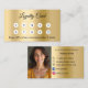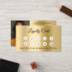 Construir la fidelidad del cliente con estilo con esta tarjeta de fidelización de negocio de oro. La parte delantera cuenta con elegantes círculos para marcar cada compra o visita, mientras que la parte posterior incluye espacio para el logotipo de su empresa, información de contacto. Ideal para salones, cafés, boutiques y negocios de servicios que quieren mantener a los clientes de vuelta. Diseñado profesionalmente para hacer que su marca destaque en línea y en persona. Al frente: Añade un descuento. Atrás: Personaliza y agrega tu nombre, título, número de teléfono, correo, dirección del sitio web. Iconos de Facebook e Instagram.