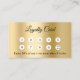 Construir la fidelidad del cliente con estilo con esta tarjeta de fidelización de negocio de oro. La parte delantera incluye círculos elegantes para marcar cada compra o visita, mientras que la parte posterior incluye espacio para el logotipo de su empresa, código QR, información de contacto. Ideal para salones, cafés, boutiques y negocios de servicios que quieren mantener a los clientes de vuelta. Diseñado profesionalmente para hacer que su marca destaque en línea y en persona. Al frente: Añade un descuento. Atrás: Personaliza y agrega tu nombre, título, número de teléfono, correo, dirección de sitio web, logotipo de negocio.