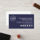 Esta tarjeta de fidelidad presenta un frente minimalista y elegante con un fondo azul marino y fuentes sans serif blancas para un aspecto limpio y moderno. Un espacio para su logotipo se coloca en la parte superior izquierda, con la información de contacto de su negocio claramente visible para un acceso fácil. En la esquina inferior derecha, hay espacio para puntos de perforación para rastrear las visitas o compras de los clientes, perfecto para fomentar la lealtad del cliente.