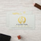 Plantilla de tarjeta de fidelidad de clase 5 del instructor de meditación de yoga - Elegante caligrafía de oro Yoga meditation Pose y símbolo ZEN con fondo de papel blanco.