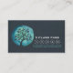 Elegante modelo de tarjeta de fidelidad de clase 5 del instructor de meditación de yoga en árbol de acuarela negro y Verde azulado.