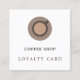 Minimalista diseño de tarjetas de fidelización de personalizable con un icono minimalista de taza de café. Diseño sencillo pero único para servicios relacionados con el café, cafeterías. Puede cambiar el tipo de papel. Personalizar con su texto personal o eslogan en el reverso o puede borrar esta opción de texto. Puedes igualarlo con una tarjeta de visita cuadrada de nuestra tienda.