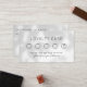 Aumente la fidelidad del cliente con este diseño elegante y minimalista de tarjetas de fidelización. Esta tarjeta de fidelidad, con un diseño limpio y cinco círculos de recompensa de personalizable, es ideal para salones, boutiques, cafeterías y pequeñas empresas. Puede personalizar el texto de recompensa para que se ajuste a sus necesidades empresariales y animar a que se repitan las visitas con esta plantilla de tarjetas de recompensa moderna y elegante. Perfecto para servicios de belleza y bienestar, tiendas minoristas y más!