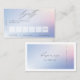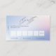 Elegante tarjeta de fidelidad en gradiente pastel con tus contactos de negocio, caligrafía de escritura manuscrita gris junto con un lugar para tu logotipo y contactos personalizados. Elementos coincidentes disponibles.
