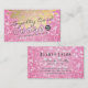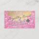 Tarjeta de fidelidad Artista de maquillaje moderno y floral de oro vintage con estilo de pelo con elegante tarjeta de visita Purpurina rosa.