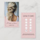 Recompense la fidelidad de los clientes con estilo con esta moderna tarjeta de fidelidad de estilo rosado. La parte delantera incluye una foto personalizado y un guión moderno y elegante para mostrar su nombre o salón. En la parte trasera hay 10 ranuras para sellar o marcar visitas, además de espacio para personalizar tus ofertas especiales, perfecto para añadir un bono en la quinta y décima cita para mantener a los clientes de vuelta!