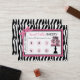 Diseño elegante de la torta con la pequeña tarjeta de la lealtad del negocio de la panadería del estampado de zebra y del acento y del arco 3D-look y del ajuste de las rosas fuertes.