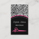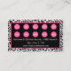 Una tarjeta de visita de fidelidad al peinado de moda recompensa la tarjeta de visita con un diseño de diseño de leopardo blanco y negro y unas luciérnagas peluqueras de color rosa pálido adornadas con una bonita flor de margarita retro. Esta tarjeta de visita del salón de belleza de impresión animal de moda se puede personalizar añadiendo el nombre del estilista y las ofertas de recompensa.