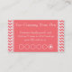 Promociona tu negocio con esta moderna tarjeta de negocios con patrón de rosa y chevron blanco y con descuento/promoción cupón y tarjeta de ahorro en uno. Golpea al personalizar y personaliza esta tarjeta para convertirla en tu propia.