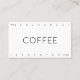 El café es una bebida elaborada con un sabor amargo preparado a partir de las semillas asadas de la planta de café. Los granos se encuentran en cerezas de café, que crecen en árboles cultivados en más de 70 países, principalmente en América Latina ecuatorial, el sudeste asiático, el sur de Asia y África. El café verde (sin tostar) es uno de los productos agrícolas más comercializados del mundo. Ideal para una cafetería informal o espresso en auto o incluso una cafetería que sirve cafés y cafés con leche y mochas. Cambie los números si desea ofrecer una bebida gratuita después de menos (o más) visitas. No dejes que tus clientes regresen para más de tu especialidad, bebidas de café de alta calidad!