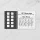 La tarjeta de visita de la clase de la aptitud con la clase opcional 10 pasa encendido detrás. La tarjeta contiene 10 cajas que se perforarán o selladas. También tiene sitio de incorporar tiempos de la clase o nombres de clases. Completamente adaptable, entre en su información de compañía y personalice esta tarjeta a la habitación sus necesidades.