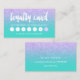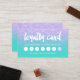 Una tarjeta de fidelización moderna y de diseño para el cabello y maquillaje de artista tarjeta de visita con una tipografía moderna de pincel a mano en blanco sobre un purpurina falso de lavanda morada y un brillante fondo turquesa de moda y elegante. Si necesitas alguna personalización, no dudes en contactarme