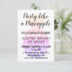 Fiesta como un destino tropical de piña cualquier invitación de cumpleaños de edad. Esta es una invitación perfecta para el cumpleaños de Cualquier Edad para una fiesta de cumpleaños con tema de piña. La piña es un Relieve metalizado falso rosa y morado oscuro y fondo blanco con escritura de texto con letras a mano en la parte superior. El texto se puede personalizar con su información. Póngase en contacto con el diseñador si desea que coincidan con los elementos personalizados.