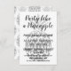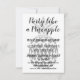 Fiesta como un destino tropical de piña cualquier invitación de cumpleaños de edad. Esta es una invitación perfecta para el cumpleaños de Cualquier Edad para una fiesta de cumpleaños con tema de piña. La piña es un Relieve metalizado plateado falso y fondo blanco con escritura de texto con letras a mano en la parte superior. El texto se puede personalizar con su información. Póngase en contacto con el diseñador si desea que coincidan con los elementos personalizados.