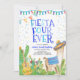 Una invitación de Fiesta de cuatro años para tu fiesta de cuarto cumpleaños. Con adorables ilustraciones de llama y cactus, incluidos los de delante y de atrás.