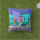 Este Cojín decorativo de Fiestas de Personalizados de vacaciones retro Navidades al aire libre le pondrá en el espíritu de las vacaciones. El diseño de esta casa moderna de mediados de siglo es exterior. A través de las paredes de cristal color turquesa del suelo al techo se pueden ver las siluetas azul marino de los fiestas festivos. Hay una pareja conversando frente a un árbol de Navidad verde, decorado con adornos verde azulados. En el lado opuesto de la sala, se ve a un bailarín y al hombre de larga trayectoria que todos intentan evitar. El exterior de la casa cuenta con una alegre puerta roja con una corona de feriado, una chimenea de ladrillo violeta de gran tamaño y varias lámparas de Navidad coloridas. Una pasarela gris está cortando una franja hacia la puerta principal, a través del césped verde azulado. La escena nocturna tiene un cielo azul oscuro con una luna amarilla y creciente. El muñeco de nieve de plástico que decora el patio delantero es recibido por las primeras ráfagas de nieve de la temporada. Una pareja atractiva está haciendo la cha-cha-cha en el camino a su auto. La rubia lleva puesto un vestido rojo brillante. Ella está sosteniendo un brote de mistletoe en una mano. Su guapa escolta lleva puesto un traje negro y una corbata roja. Sus manos están envueltas alrededor de la cintura de la mujer. En la calle, frente a la casa, podemos ver tres coches clásicos de colores vivos. En el lado opuesto de la almohada hay un fondo azul y mucho espacio para personalizar, si lo deseas. ¡Pida hoy y fiesta como si fuera 1959!