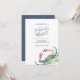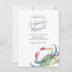 Esta elegante invitación para una fiesta de compromiso con tema de playa presenta sus nombres en una tipografía de escritura a mano con estilo y los detalles del evento en una fuente serif de color gris carbón clásico sobre un fondo blanco crujiente. Mi cangrejo original acuarela en tonos de rojos, azules y verdes adorna la parte delantera. La tarjeta de invitación se invierte a un color azul marino complementario. Una elección chic costera y elegante para una fiesta de compromiso casual en la playa de Nueva Inglaterra, náutica o de verano. Para ver mi suite completa de papelería de boda visite DoTellABelle en Zazzle.