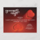 Invitación de Tarjeta Postal Roja de Fiesta de Compromiso por Multiform, presenta dos corazones tridimensionales en atracción mutua sobre un fondo rojo radiante. Este diseño moderno es parte de una serie que presenta iconos de corazón y se puede personalizar fácilmente con la fecha, hora, ubicación y información de RSVP de su fiesta.