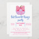 Presenta un fiesta de las cosas favoritas de la caída de la moda con esta elegante invitación que incluye una calabaza rosa y azulada recubierta de un gran arco rosado. Perfecto para una reunión de otoño inspirada en la coqueta, esta invitación marca la pauta para una velada acogedora y elegante donde todos aportan tres cosas favoritas de otoño para compartir, intercambiar y celebrar la temporada. Personalice con los detalles de su fiesta para una invitación de mantenimiento intemporal.