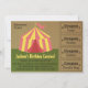 A los niños les emocionará recibir esta invitación de cumpleaños que se parece a una entrada de admisión al carnaval con su textura rústica, paleta de colores, carpa de carnaval completa con cupones en el lateral. Esto también es perfecto para las escuelas que están celebrando un carnaval escolar. Diseñado por Rusty Doodle.
