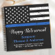 Añada el toque final a su fiesta de retiro de la policía con este delgado libro de retiro de la policía de línea azul y provisiones para fiestas. Diseño de la bandera norteamericana en los colores de la bandera de la policía, vintage diseño rústico usado. Esta colección de retiro de oficiales de policía también es perfecta para la fiesta de graduación de la academia de policía. Puedes cambiar Feliz Jubilación a Felicitaciones es personalización. Vea nuestra delgada colección de líneas azules para hacer coincidir las invitaciones de retiro de las fuerzas del orden, regalos de la policía, favores de partido y suministros. DERECHOS RESERVADOS © 2020 Judy Burrows, Black Dog Art - Todos los derechos reservados. Fiesta de Jubilación de la Policía Libro de Invitados Personalizado