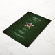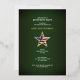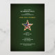 Celebremos el honorable servicio de un veterano con esta audaz y digna invitación del partido de retiro militar. Con un fondo verde y un prominente emblema de la estrella de la bandera estadounidense, este diseño es ideal para honrar cualquier rama de las Fuerzas Armadas de Estados Unidos. Personalice con el rango del jubilado, nombre, fecha de evento e información de RSVP para un envío memorable.