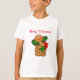 Esta camiseta de vacaciones para los niños se muestra en blanco con una tirita festiva adorable de pan de jengibre. Compra tal cual o personalizar. Imagen de stock