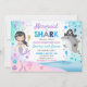 Invitación de cumpleaños de sirena y tiburón Todos los diseños son ©PIXELPERFECTIONPARTYLTD